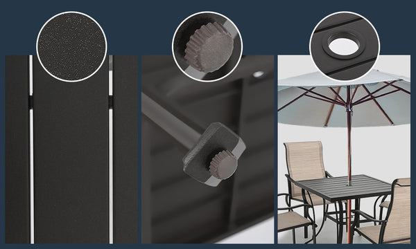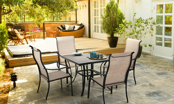 When shopping for outdoor dining sets, you should invest in quality products. Check for reviews before making a huge purchase. An excellent way to get value for your money is to get our 5-piece patio dining set. It is durable and gives the needed comfort when you're outside.