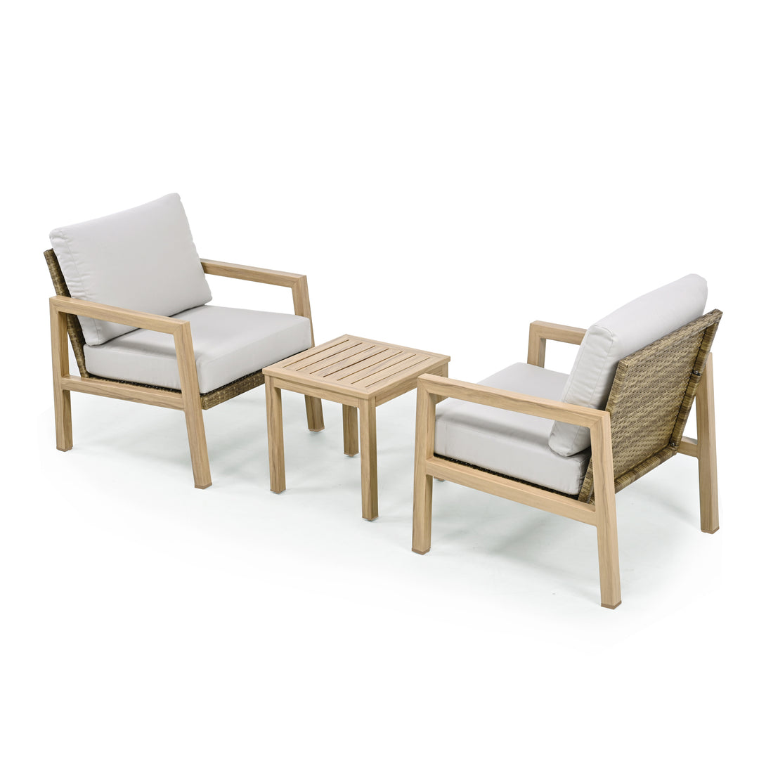HAPPATIO 3-Piece Outdoor Patio Bistro Set - 2 Aluminum Chairs with Wicker Backrest and Woodgrain-Textured Side Table, Rustic Outdoor Conversation Set with Cushions for Garden, Balcony, Deck, Porch