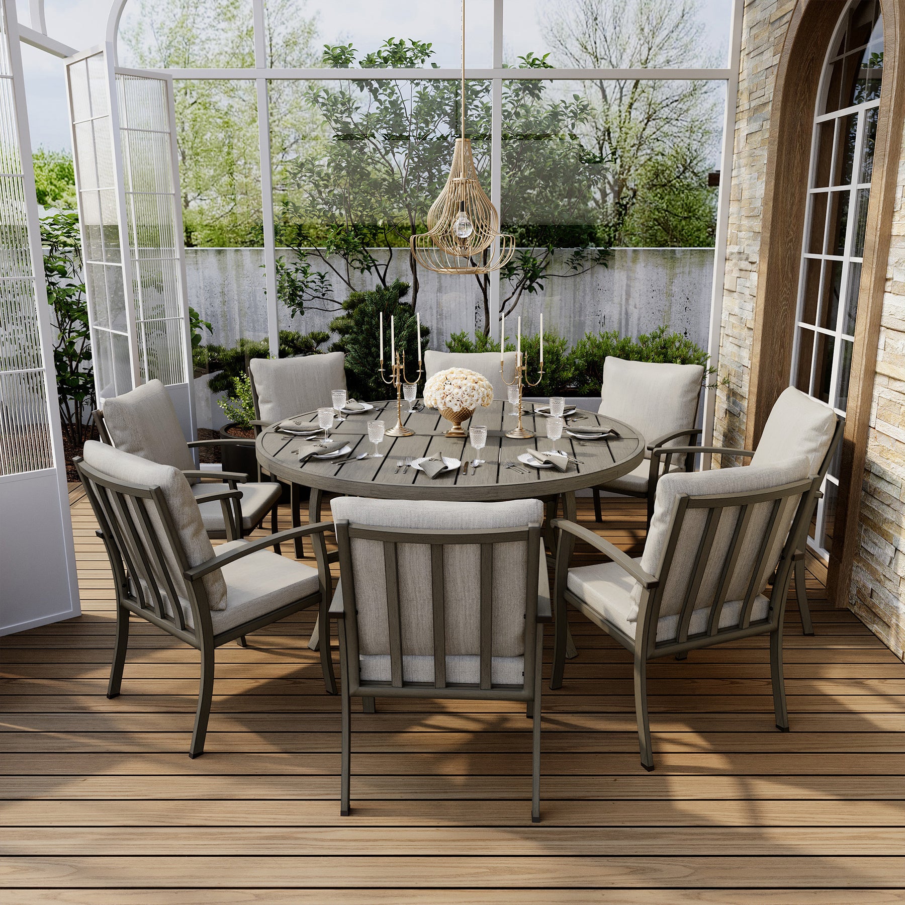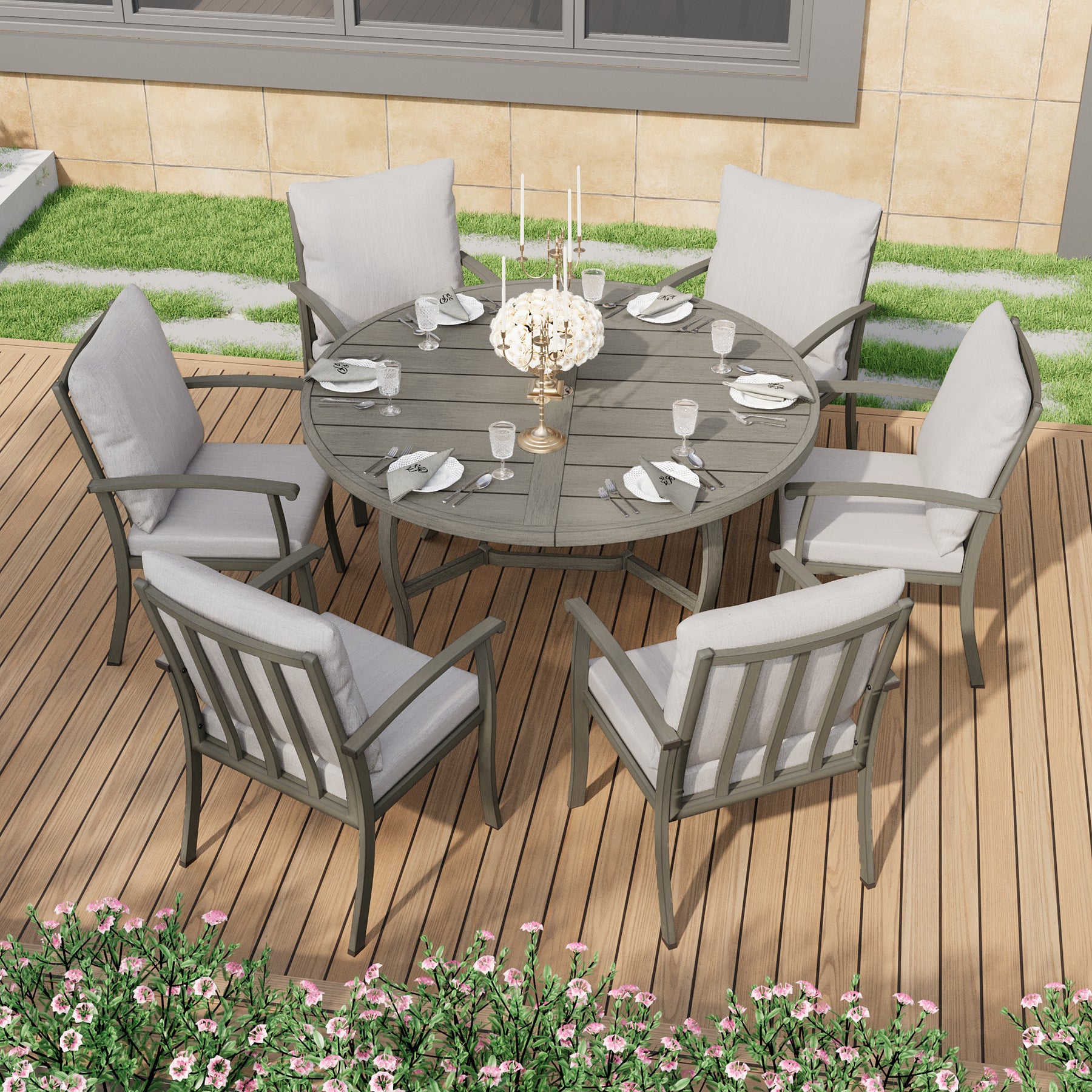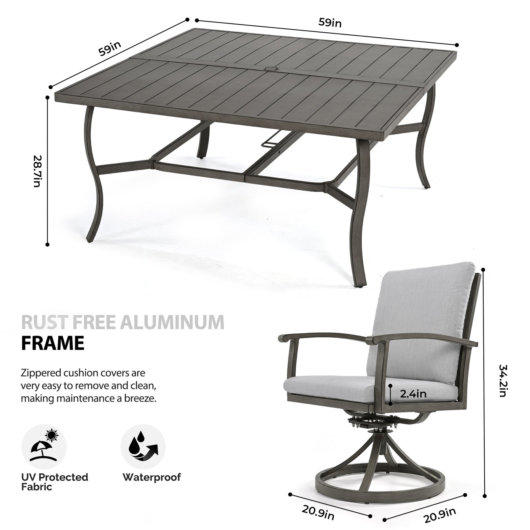 Aluminum Frame: The lightweight aluminum frame of the patio dining set ensures that our outdoor dining furniture is easy to move yet will not rust. Aluminum is strong and will last a long time in your yard or on your deck, patio, or porch. Each chair can safely support 250 pounds of weight.
