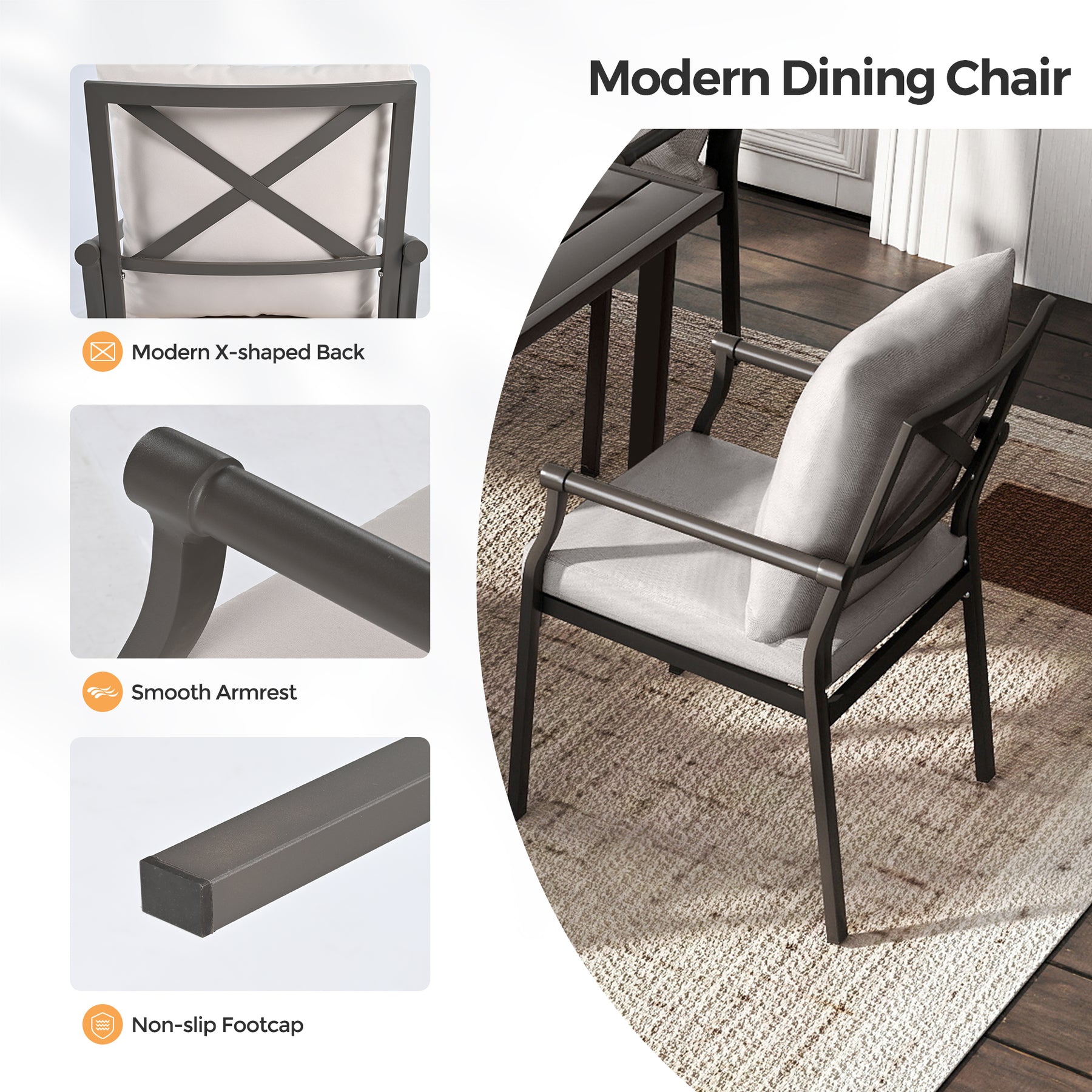 Easy to Assemble with Complete Kit: We provide detailed, easy-to-follow installation instructions and a full set of tools for this patio dining set. You don't need to spend much time or effort on assembly—no professional skills or extra tools required, helping you quickly set up the chairs and table for immediate use.
