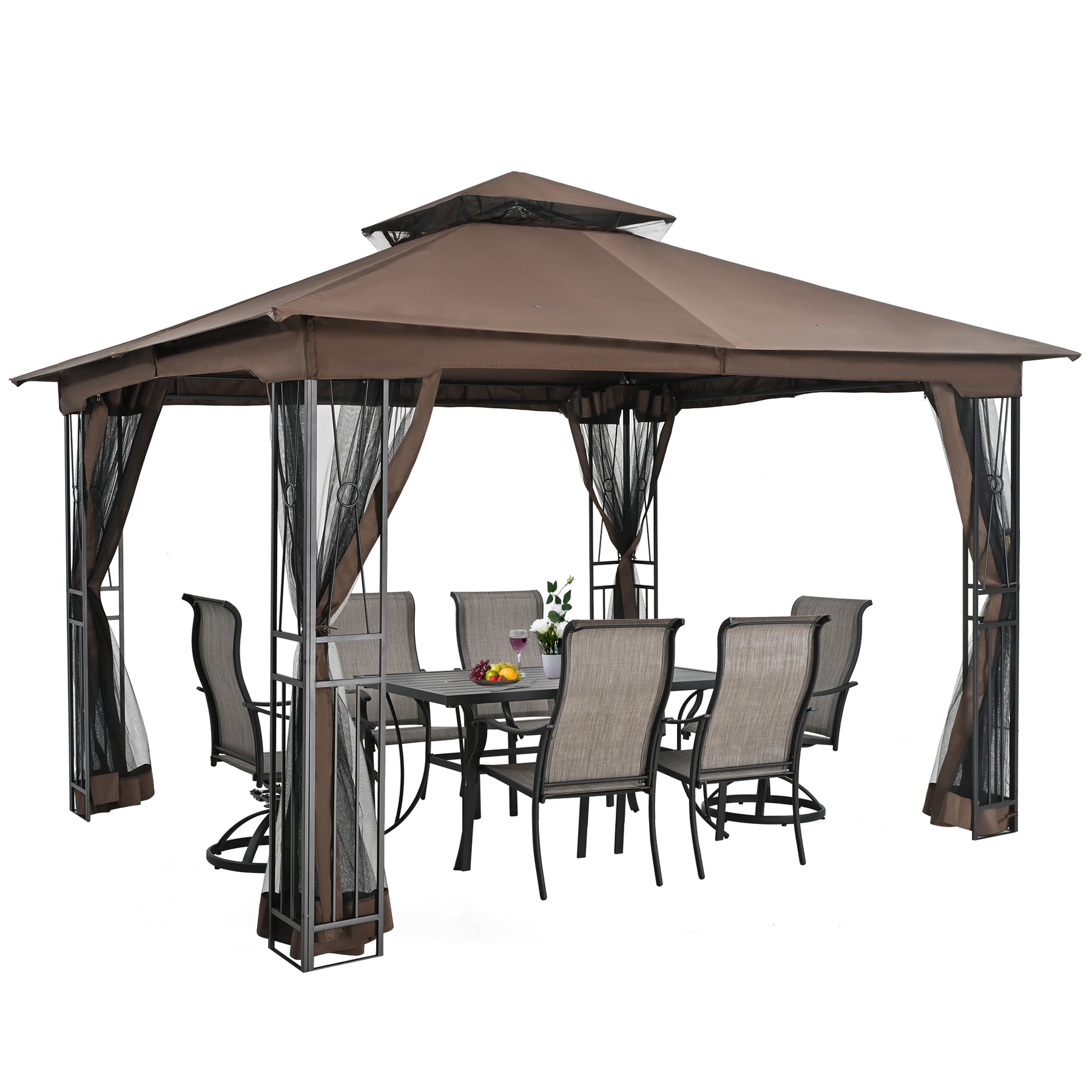Our gazebo is made of powder-coated steel, which is rust and corrosion resistant, enhancing the durability of this tent. The top of the tent is supported by eight support rods to share the pressure, which is more stable.