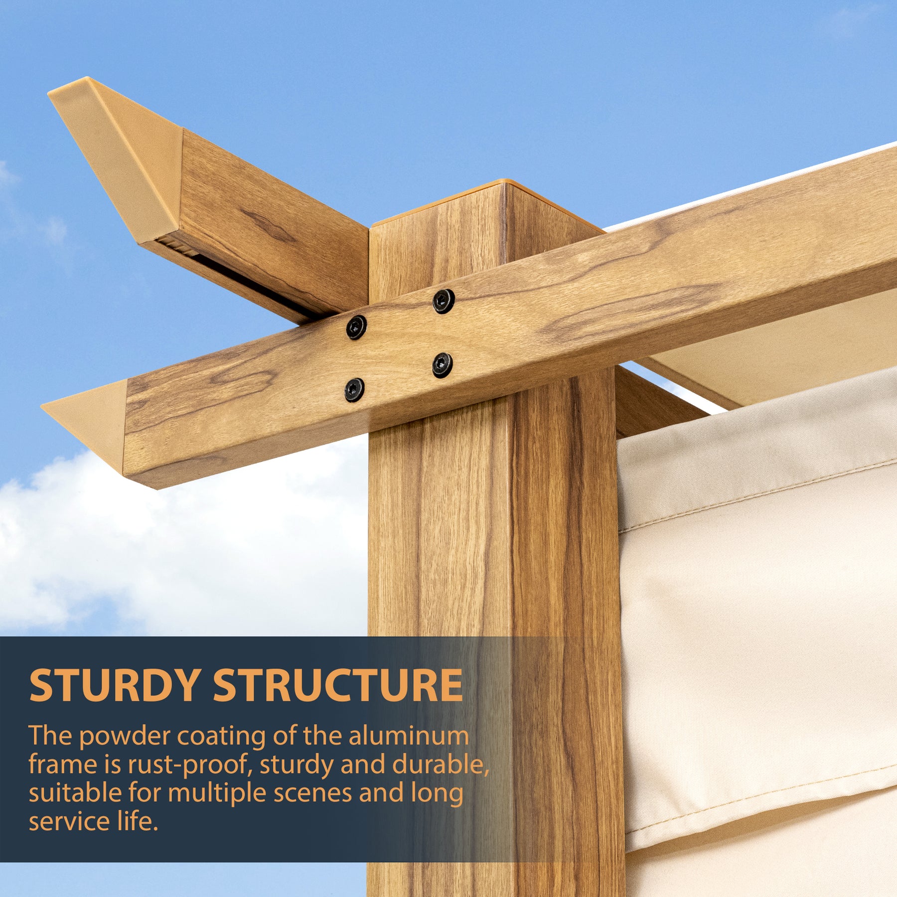 HAPPATIO Retractable Pergola Canopy for Backyard, Garden, Patio; Woodgrain-Look Aluminum Frame with Retractable Pergola Canopy, Includes Anchors and Expansion Screws
