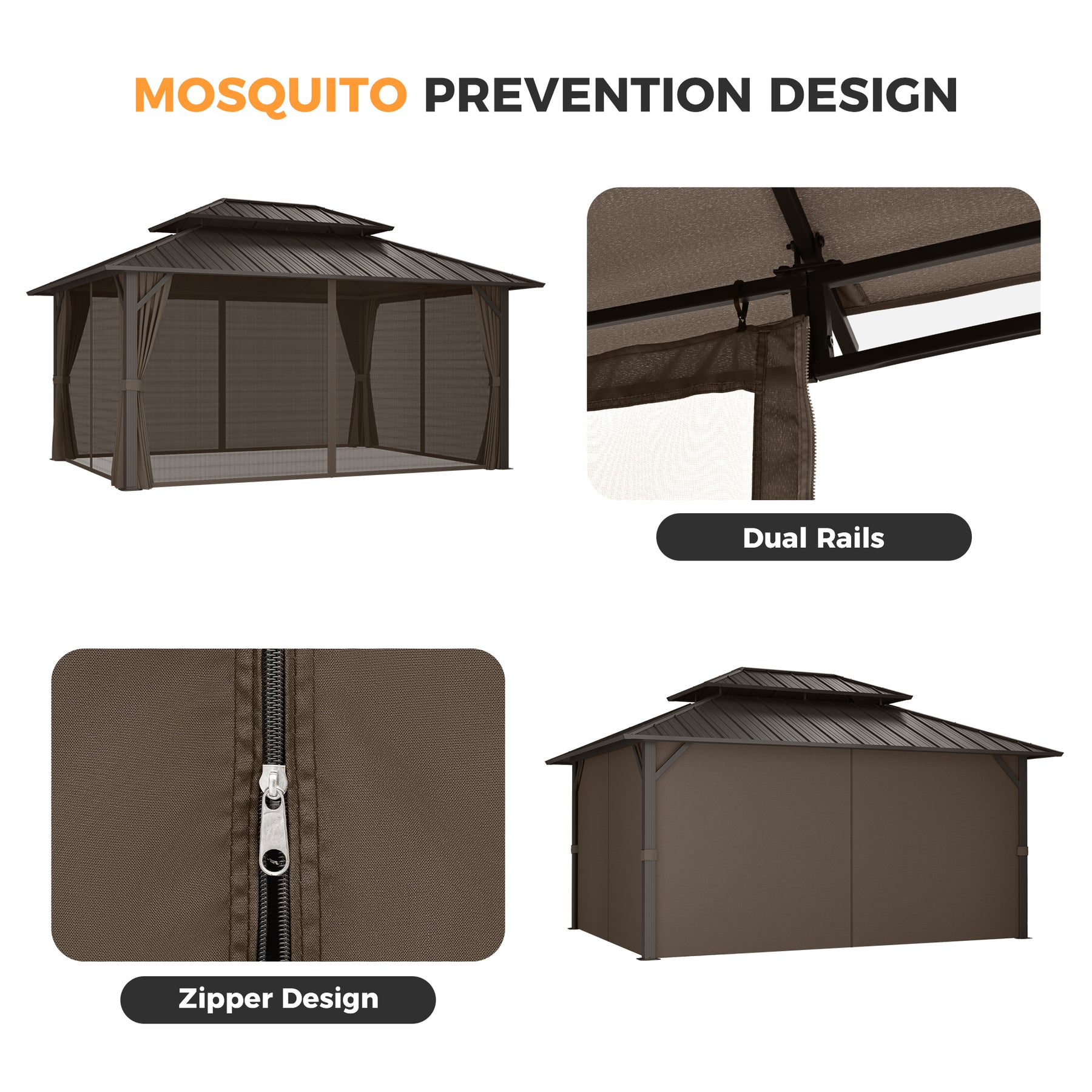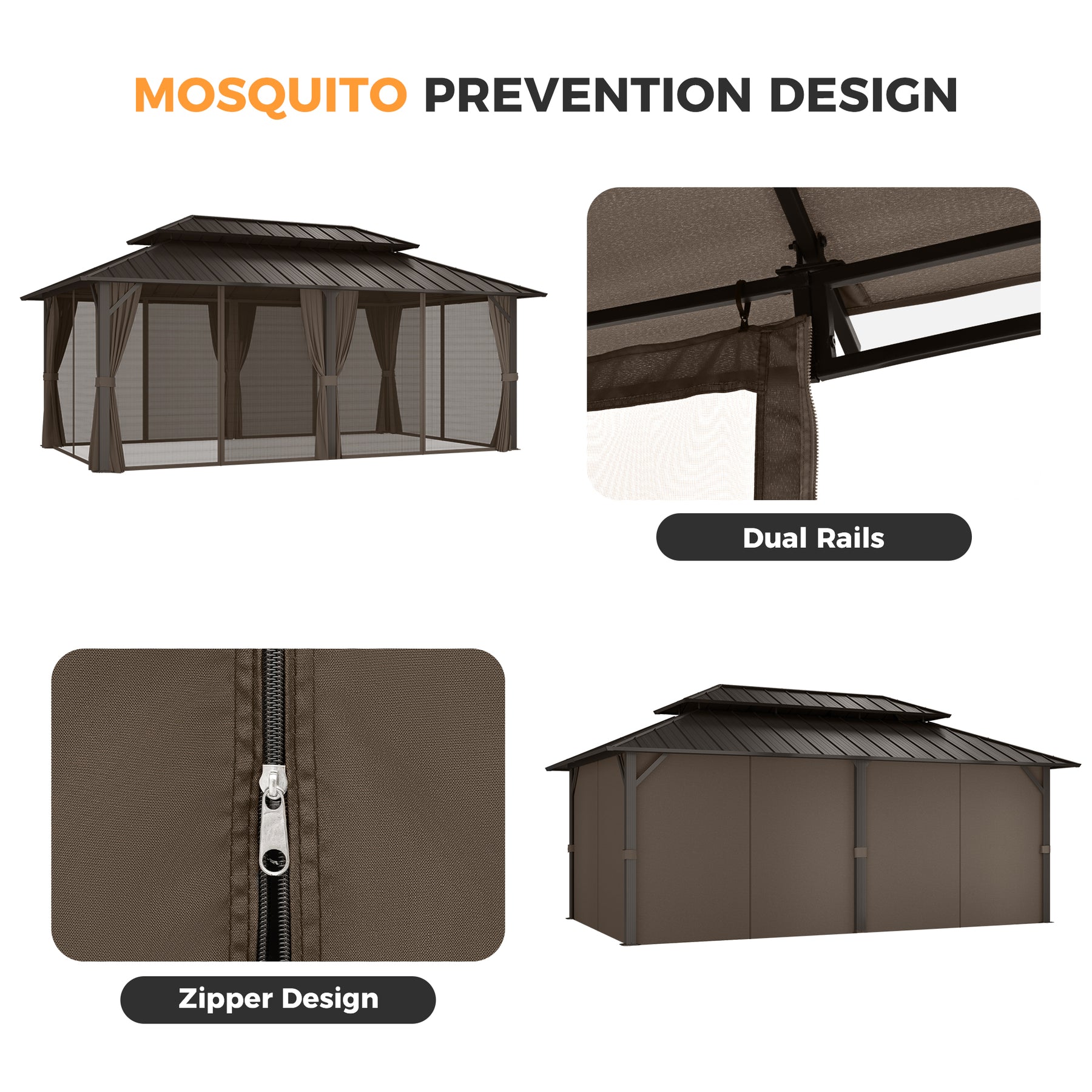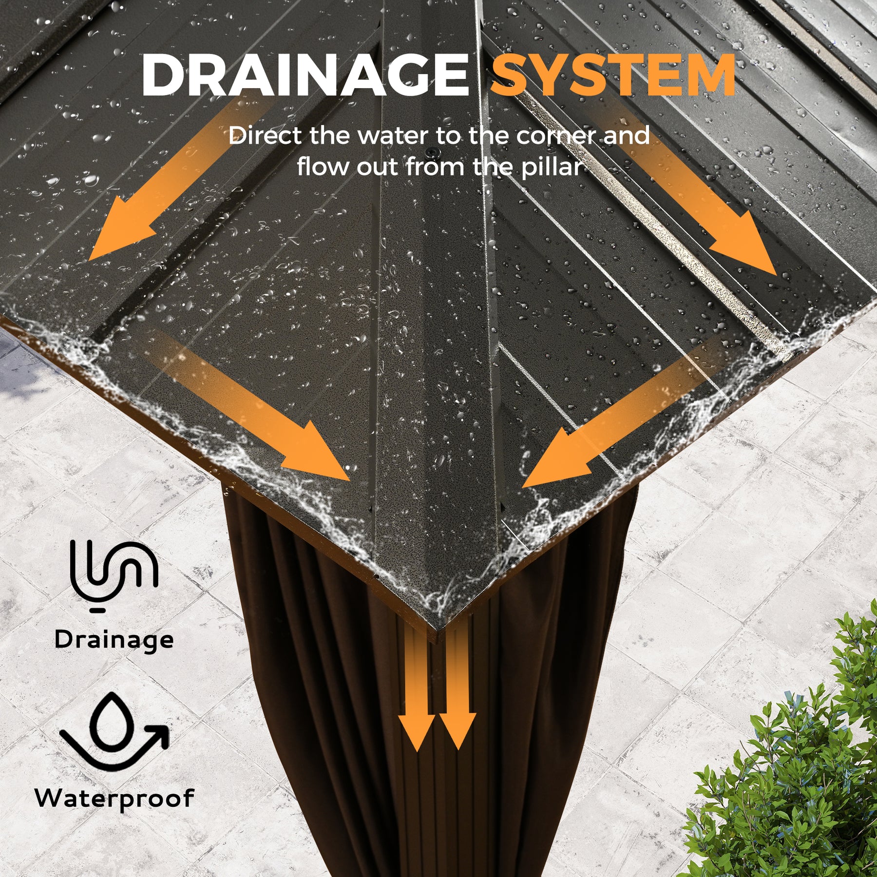 Stable Double-Top Design & Functional Hooks The innovative double-roof structure not only enhances air circulation but also significantly increases stability against strong winds. Built-in hooks at the center provide a convenient solution for hanging lights, plants, or other decorations to create your ideal ambiance.