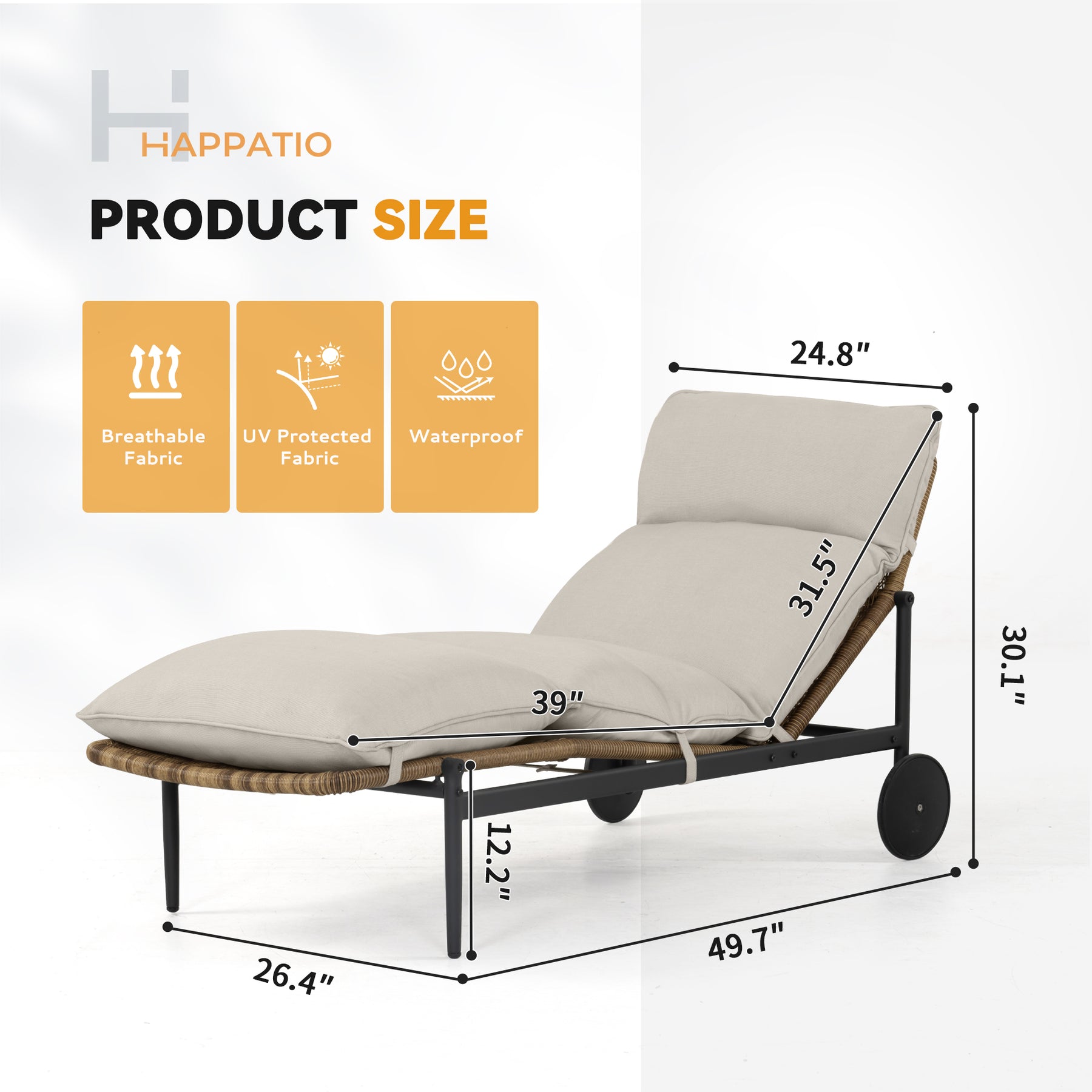 Integrated flexible wheels allow you to effortlessly move the chaise lounge across your patio or yard. This design makes it easy to follow sun or shade throughout the day while protecting ground surfaces from damage.