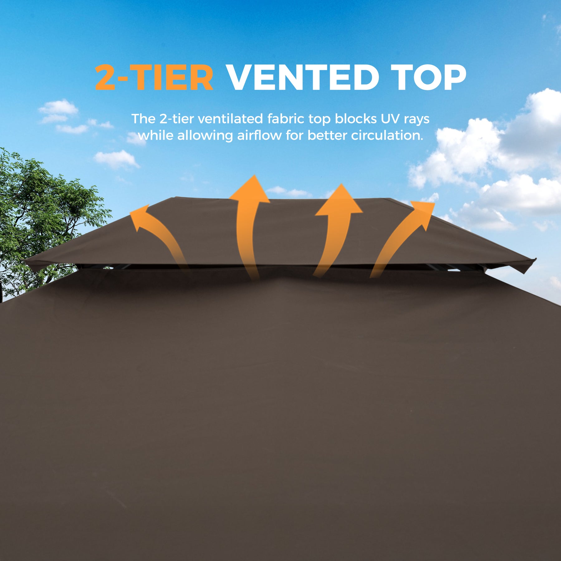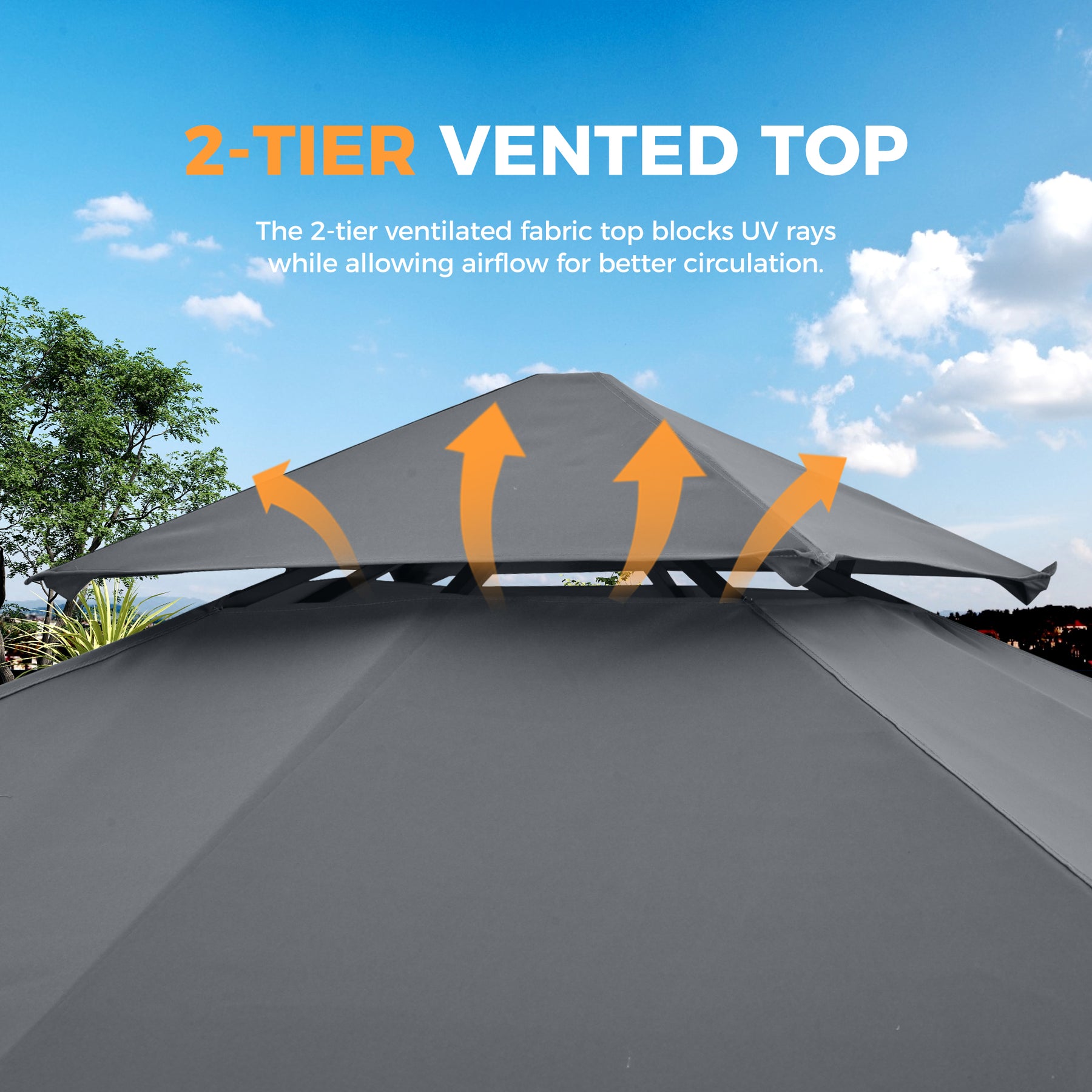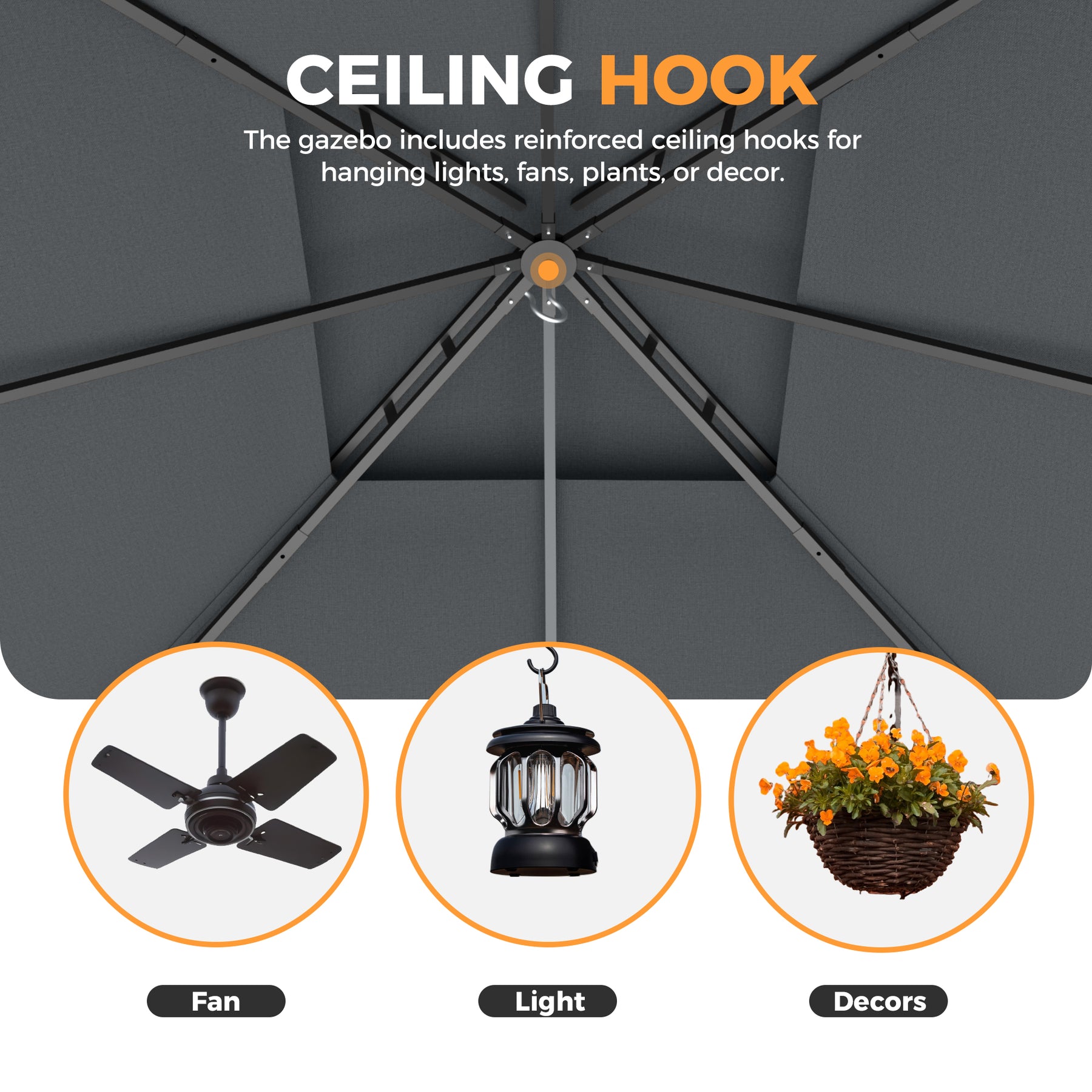 Ventilated Double Roof for Enhanced Comfort The innovative double roof design promotes superior airflow to keep the space underneath cool and comfortable. It simultaneously provides excellent protection from UV rays and rain, making the gazebo suitable for year-round use.